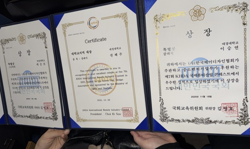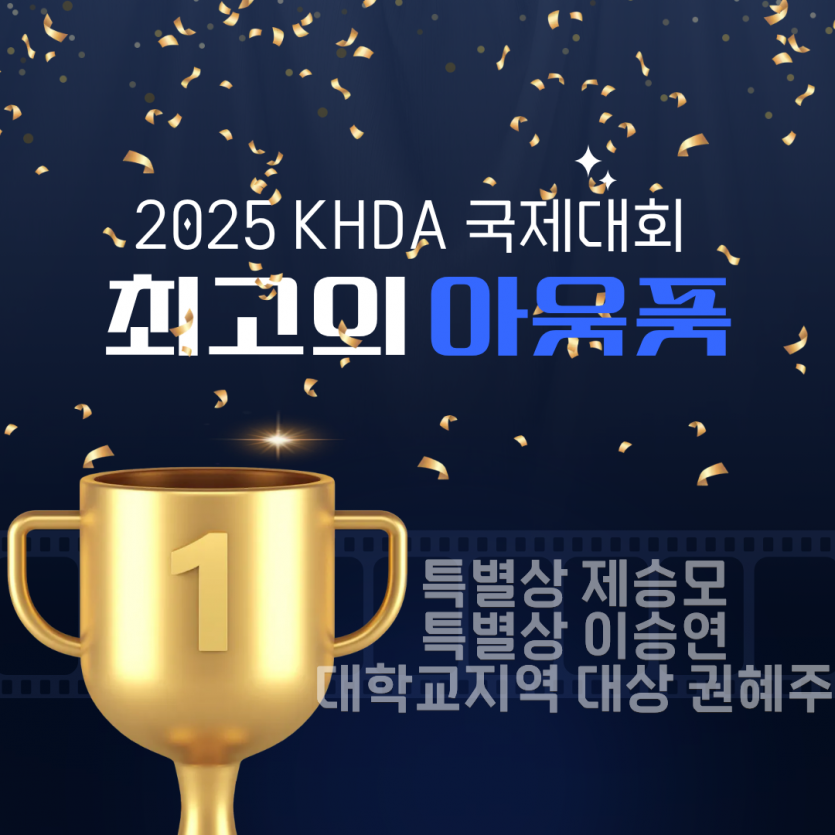 지난 11월 18일 대전에서 열린 2025 KHDA 국제대회 시상식에 직접 참석하여 <국회 교육위원회 위원장 특별상 클래식 부문, 스트럭춰 부문>, <대학교 지역 대상 클래식 부문>을 받게 되었습니다